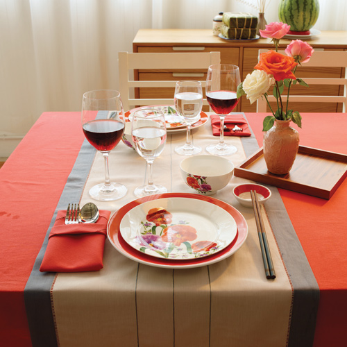Người Việt thường ít dùng khăn trải bàn trong các bữa ăn, tuy nhiên để tăng sự trang trọng cho bữa tiệc cũng như góp phần tôn vinh những món ăn ngon, chúng ta nên dùng một chiếc khăn trải bàn làm phông nền cho chủ đề của bữa tiệc. Nếu có một chiếc bàn đẹp nhưng vẫn muốn tạo điểm nhấn khác biệt ngày thường, bạn có thể dùng 1 dải khăn đặt giữa bàn.