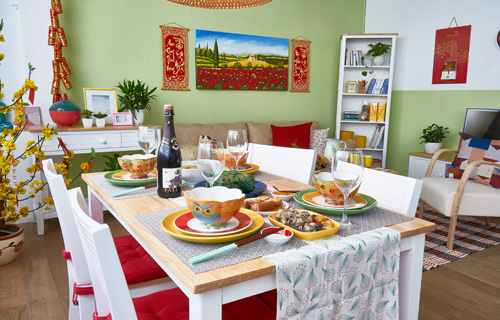 Vì là dịp Tết cổ truyền nên có lẽ phong cách Việt Nam sẽ chiếm ưu thế hơn, tuy nhiên nếu bạn cảm thấy muốn đổi mới không khí một chút thì phong cách phương Tây cũng không tồi đâu. Đối với phong cách Việt thì điều bạn cần làm là chọn một bộ chén bát có hoa văn, hoạ tiết mùa xuân hoặc là màu sắc mang đến sự vui vẻ may mắn. Mỗi vị trí sẽ đặt một chiếc bát và một đôi đũa, giữa bàn là những tô, dĩa có kích thước lớn hơn để đựng thức ăn chung cho mọi người. Ngoài ra bạn cũng đừng quên thêm vào những chén nhỏ đựng nước chấm. Ly cốc nên đặt phía bên phải của mỗi người để tiện sử dụng.