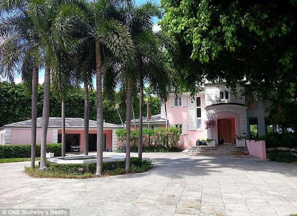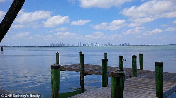 Biệt thự màu hồng có cầu tàu riêng vô cùng nổi bật nhìn ra vịnh Biscayne và đường chân trời Miami này.