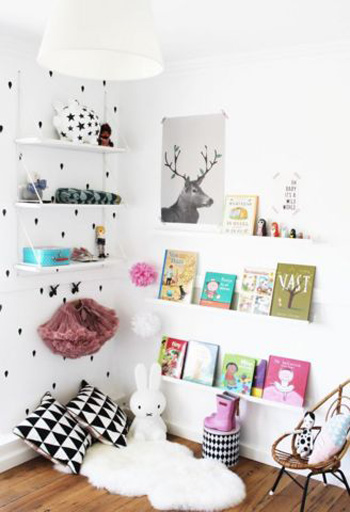 | Các em nhỏ có xu hướng thích ngồi ở các góc nhà nên sẽ rất ưng ý nếu xung quanh có những cuốn sách, thú nhồi bông yêu thích. |