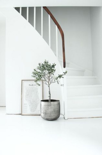| Một bình cây và bức poster bản đồ đơn giản không làm mất vẻ đẹp tối giản của cầu thang mà còn làm nhà sinh động hơn. |
