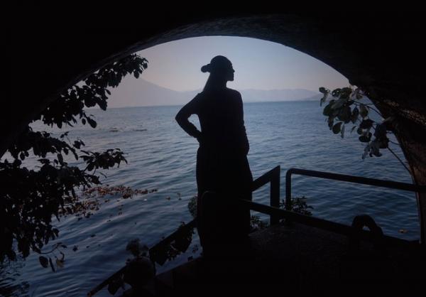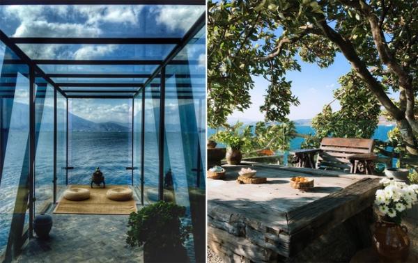 Biệt thự nằm kề mặt nước, bao quanh là núi non.