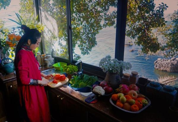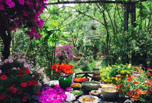 Dương Lệ Bình biến căn nhà của mình thành khu vườn hoa giữa khung cảnh sông nước nên thơ.