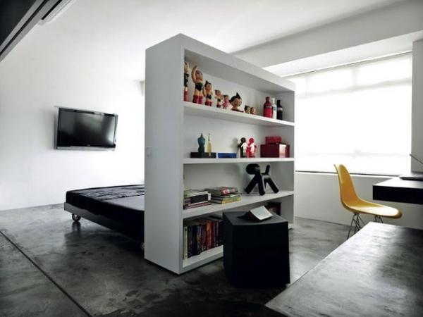 Thật khó có thể tin nổi đây vừa là tủ quần áo, vừa là giường và đồng thời cũng là vách ngăn hữu ích giúp phân chia không gian trong nhà.