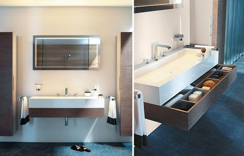 | Phần gỗ phía dưới bồn rửa tay thực chất là ngăn kéo được bố trí hợp lý và chứa được lượng đồ lớn. |