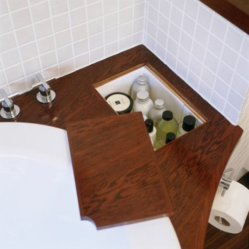 | Mặt bồn tắm cũng được tận dụng làm nơi chứa các loại sữa tắm, sữa rửa mặt, nước rửa tay. |