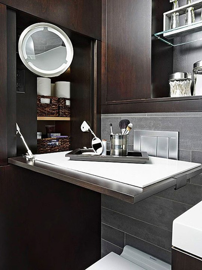 | Bạn sẽ có một mặt bàn để đồ trang điểm khi mở chiếc tủ âm tường. |