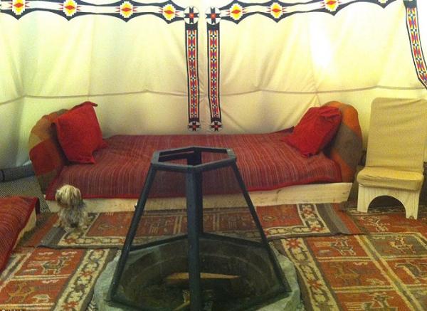 Các nghệ sĩ ở Nomadics Tipi Makers đã tạo ra một căn lều có họa tiết vô cùng bắt mắt. Phía bên trong túp lều có một chiếc giường ngủ, nệm ghế sofa và một cái đèn chạy bằng năng lượng mặt trời.