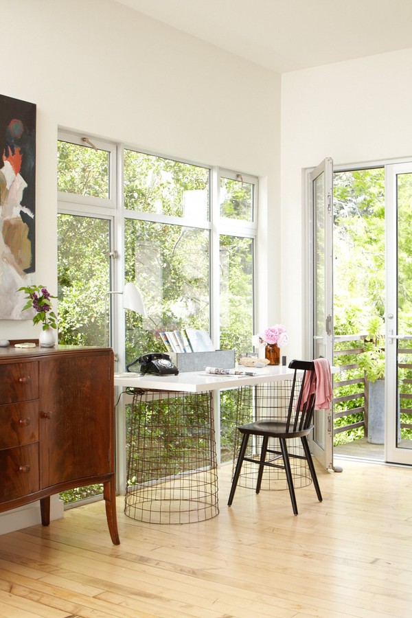 Không cần đặt những chiếc bàn gỗ với chiếc chân gỗ to đùng khiến không gian nhà bí bách. Bạn chỉ cần đặt mặt bàn gỗ thôi, còn lại 4 chiếc chân bàn có thể thay thế bằng hai chiếc chân làm từ những sợi sắt. Nó sẽ giúp không gian nhà bạn thoáng đãng hơn.