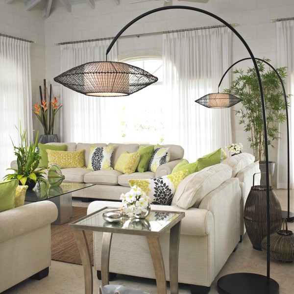 Chiếc đèn phòng khách được làm thêm một lớp chụp bên ngoài bằng những sợi dây sắt một cách độc đáo